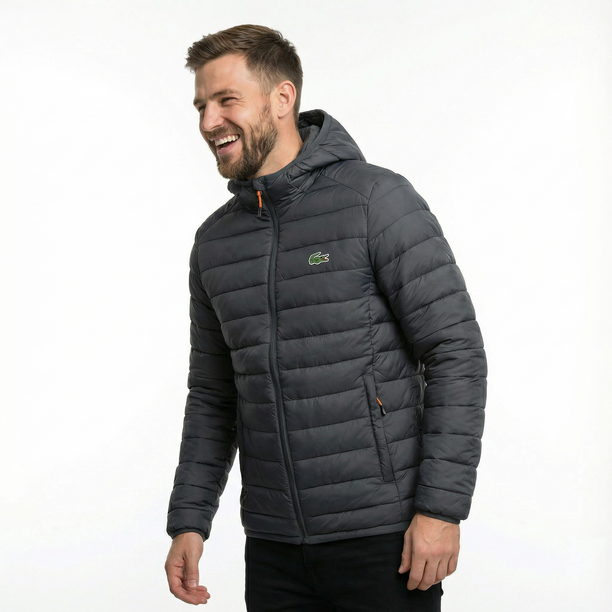 Die Lacoste® Premium Thermo-Steppjacke mit Kapuze überzeugt durch hochwertige Materialien und eine leichte, effiziente Wärmeisolierung.